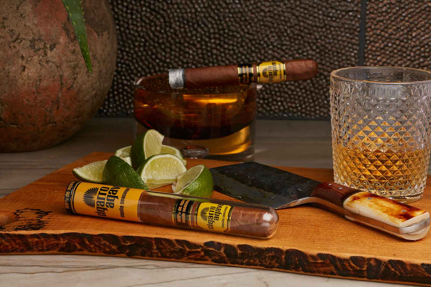 Experience the ultimate tequila twist. Aromatically seasoned with 100% de agave premium aged tequila. Available: 6x50, 5x38, and cigarillos.