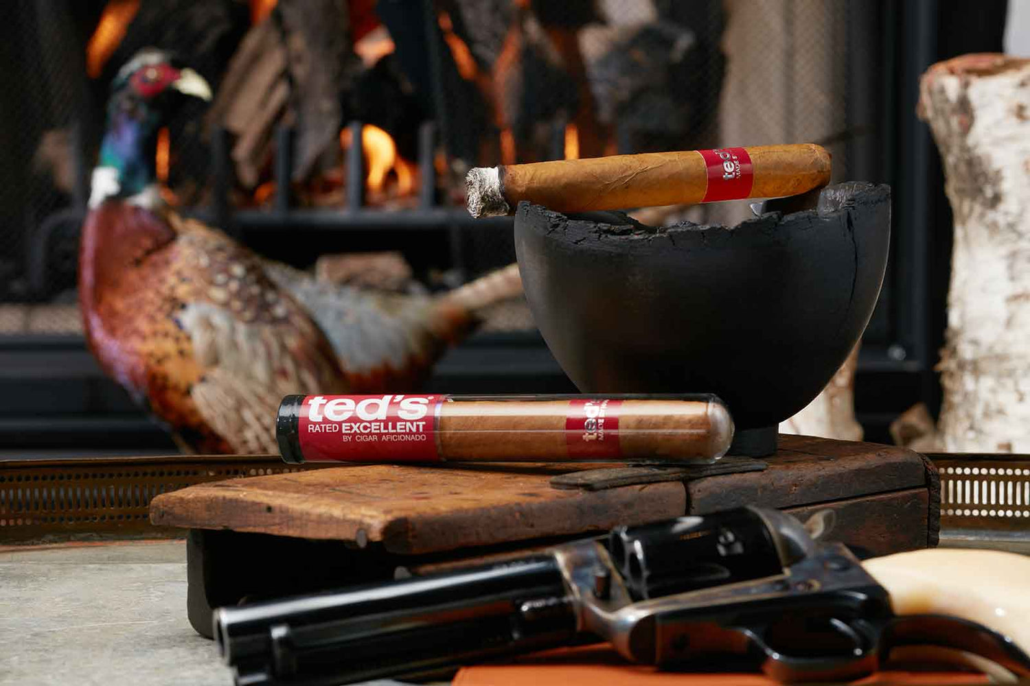 Our flagship cigar. Aromatically seasoned with Ted's Small Batch Bourbon. Available: 6x50, 5x62, 5x38, 10th Anniversary & cigarillos.